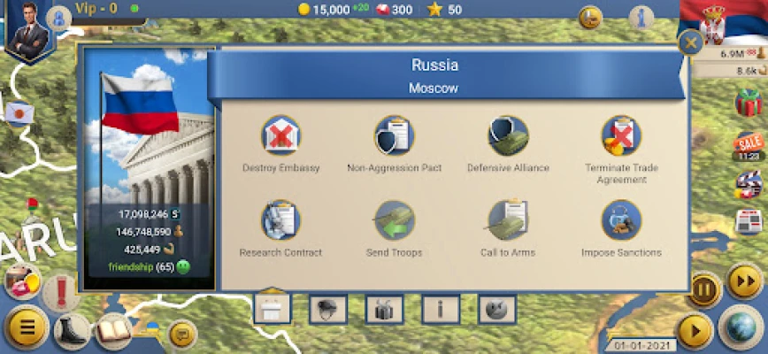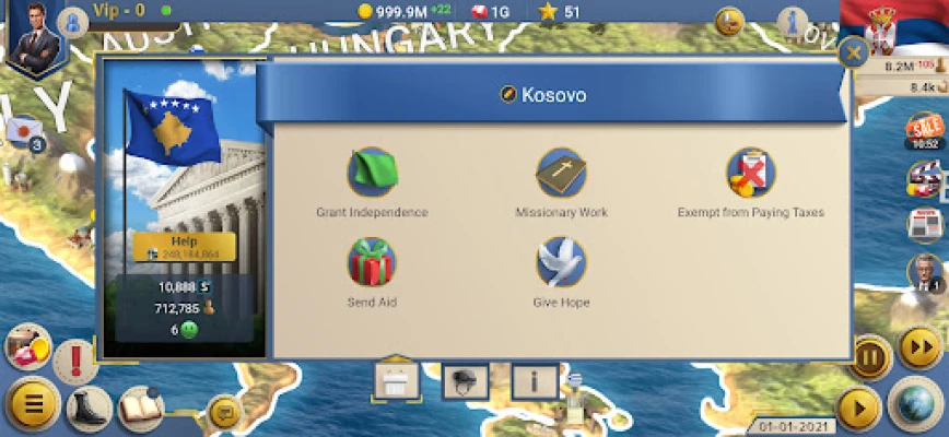 Да ли сте икада маштали о томе да водите сопствену нацију и обликујете њену судбину? Игра "Modern Age 2 - Симулатор председника" пружа вам јединствену прилику да уроните у сложени свет државног управљања, где свака ваша одлука има дубок утицај. Ово је врхунска стратешка симулација која вас ставља у председничку фотељу, изазивајући вашу вештину планирања, дипломатије и вођења цивилизације кроз све изазове модерног доба. Припремите се да изградите најмоћнију и најпрестижнију државу на свету, доносећи историјске одлуке.